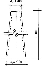 某钢筋混凝土烟囱,如下图所示,设防烈度为8度,设计基本地震加速度为0.2g,设计地震分组为第一组,场地类别为Ⅱ类。试验算烟囱基本自振周期的水平地震影响系数,并指出它与下列( )项数值最为接近。