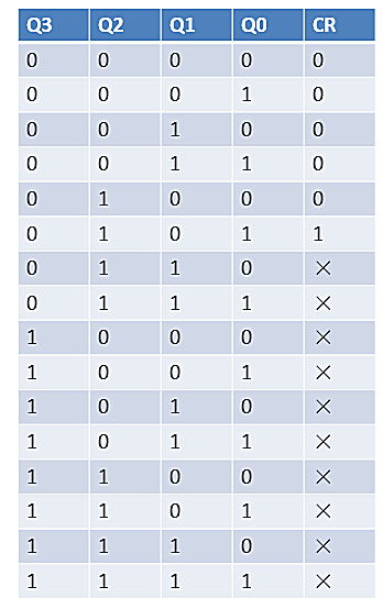 若某计数器芯片的清零端为高电平有效的且异步的,真值表如下,计数器的模为几?