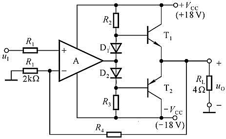 电路如下图所示。已知T1和T2管的饱和管压降|UCES|=2V